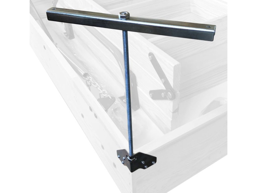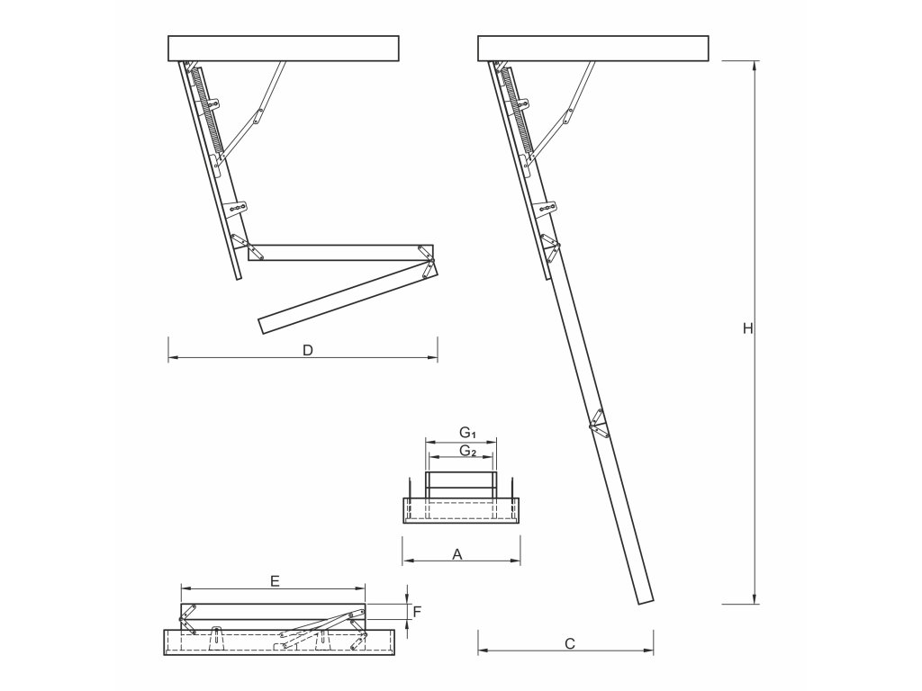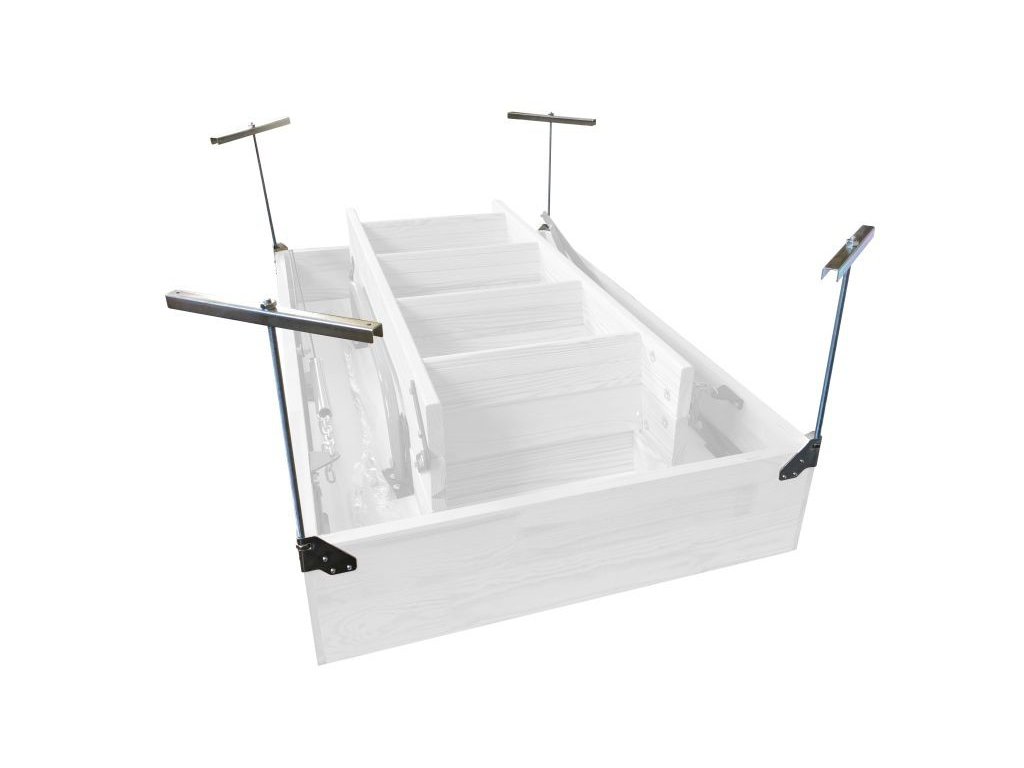 Kompletně od nás obdržíte půdní schody připravené k montáži (rám, popklop se zámkem, žebřík, kování) včetě ovládací kovové tyče a ochrannými silikonovými patkami.