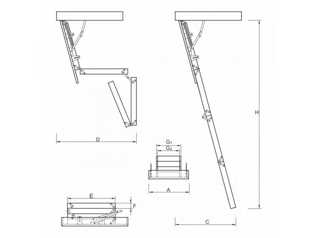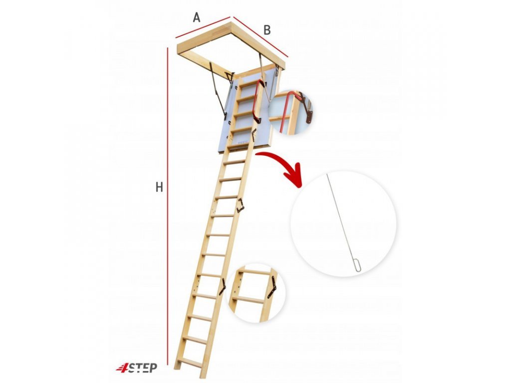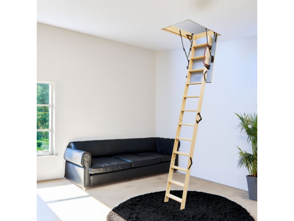 Přesné rozměry schodiště:Půdní schody jsou ideální do každé místnosti, dokonce i do elegantního obývacího pokoje, protože když se nepoužívají, schovají se pod poklop uzavřený ve stropě.