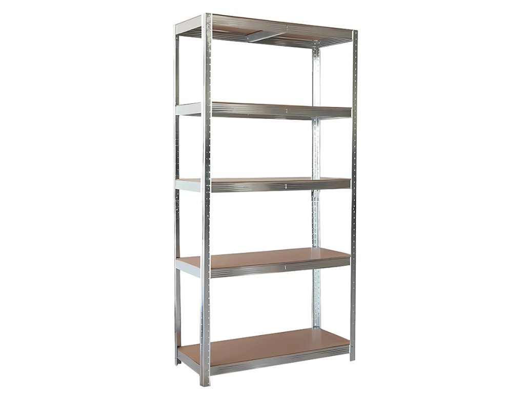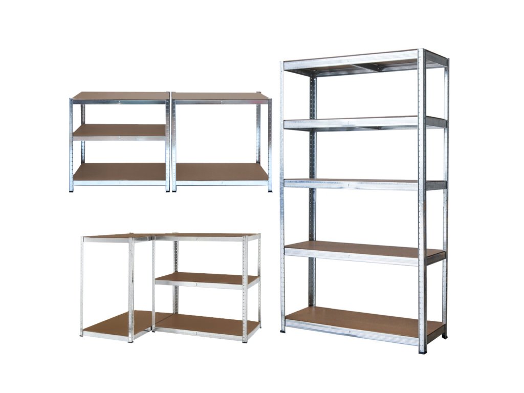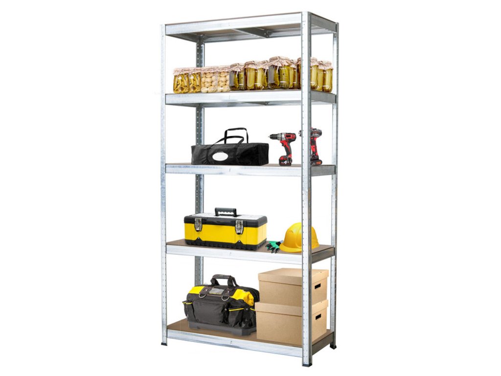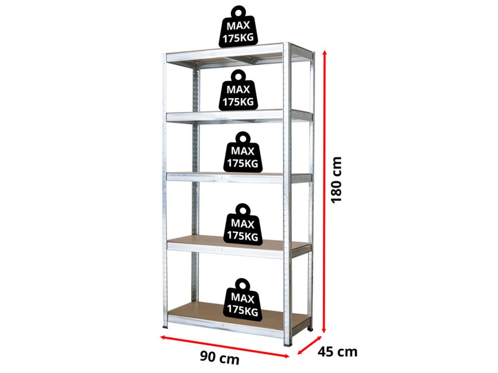 Tento kovový regál s 5 policemi nabízí dostatek prostoru pro uložení nářadí, krabic, sklenic nebo sezónních doplňků. Každá police z MDF desky (5 mm) unese až 150 kg, takže celková nosnost činí 750 kg.
